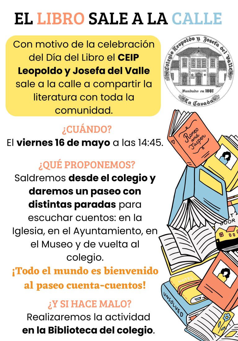 Con motivo del Día del Libro, el CEIP Leopoldo y Josefa del Valle invita a toda la comunidad a participar en un paseo muy especial lleno de historias y cuentos 🌍📖